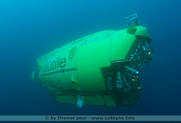 法國(guó)1984年研制成的“鸚鵡螺”號(hào)潛水器最大下潛深度可達(dá)6000米,活動(dòng)范圍可以遍及全球海域的97%。累計(jì)下潛了1700多次,完成過(guò)多金屬結(jié)合區(qū)域,深海海底生態(tài)等調(diào)查,以及沉船、有害廢料等搜索任務(wù)。該深潛器的操作和維護(hù)由GENAVIR進(jìn)行,Ifremer負(fù)責(zé)Nautile的技術(shù)支持和改進(jìn)。載人球體的材料為鈦合金,深潛器前面裝有兩個(gè)機(jī)器手臂,可用于采集樣品。Nautile的工作小組至少有8個(gè)人,包括2個(gè)潛航員(其中一個(gè)可作為監(jiān)督者)、2個(gè)精通電子的潛航員、2個(gè)導(dǎo)航專家、2個(gè)精通于機(jī)械的潛航員。“鸚鵡螺”號(hào)于1987至1998年期間,共打撈文物1500多件,它用兩個(gè)機(jī)器手臂將文物放在箱子里,然后帶回水面。1998年,“鸚鵡螺”號(hào)將一個(gè)很大(長(zhǎng)8米,寬7米)的船殼的碎片帶回水面。它的機(jī)器手臂非常靈活,即使是遇到一個(gè)水晶花瓶,也能夠完好無(wú)損地被帶回水面。