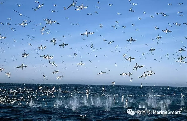 但是這么巨大的一塊誘餌堂而皇之地路過,各方豪強豈有不取的道理?讓我們把鏡頭拉近,看一看捕食者們在沙丁魚遷徙途中的饕餮盛宴吧。
