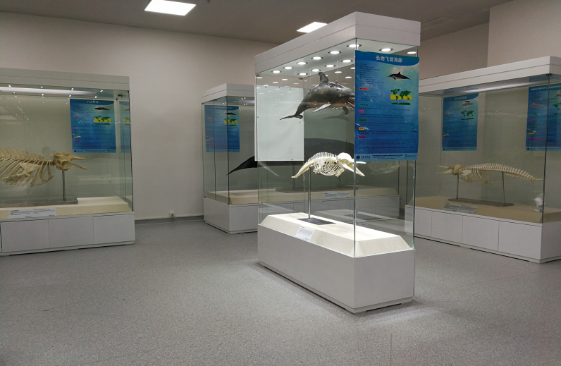 鯨豚標(biāo)本館簡(jiǎn)介:鯨豚標(biāo)本館于2017年初步建成并正式對(duì)公眾開(kāi)放,是目前國(guó)內(nèi)為數(shù)不多專(zhuān)門(mén)展示鯨豚標(biāo)本的平臺(tái)。目前展示的7副鯨豚標(biāo)本中,包括中華白海豚骨骼標(biāo)本1副,小抹香鯨皮質(zhì)和骨骼標(biāo)本各1副,短肢領(lǐng)航鯨皮質(zhì)和骨骼標(biāo)本各1副,長(zhǎng)吻飛旋海豚皮質(zhì)和骨骼標(biāo)本各1副。全部鯨豚標(biāo)本均為在海南島周邊擱淺死亡的個(gè)體,其中中華白海豚標(biāo)本以及小抹香鯨標(biāo)本均為相應(yīng)物種在海南島發(fā)現(xiàn)的首個(gè)擱淺死亡個(gè)體。