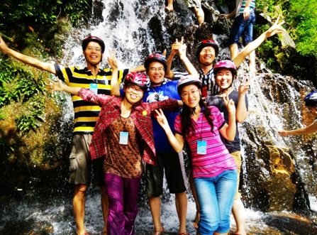 活動選址在融匯了熱帶雨林文化、黎峒文化、南藥文化、生肖文化等優秀文化理念于一體的呀諾達熱帶雨林。活動中,隊員根據個人興趣和愛好,主動分為了“飛瀑組”、“索道組”和“登山組”三大組,分別體驗了踏瀑戲水、亞洲第一索道和熱帶雨林景觀。“飛瀑組”隊員攀巖涉水,齊心協力,穿越了深淵瀑布、急流險灘等多處障礙,展現了良好的團隊精神。“索道組”隊員互相鼓勵,面對100多米高空,毫無畏懼,勇敢迎接高空索道的挑戰。“登山組”相互幫助、相互扶持,充分體驗了熱帶風情美景。