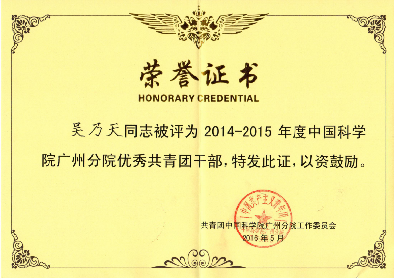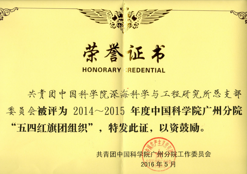 為進(jìn)一步推進(jìn)中國(guó)科學(xué)院廣州分院基層團(tuán)組織的各項(xiàng)建設(shè),增強(qiáng)團(tuán)組織的凝聚力和戰(zhàn)斗力,引導(dǎo)團(tuán)員、團(tuán)干部積極投身實(shí)施 “率先行動(dòng)”計(jì)劃,廣州分院團(tuán)工委在“五四青年節(jié)”期間,表彰一批20142015年度廣州分院“五四紅旗團(tuán)組織”、優(yōu)秀團(tuán)干部和優(yōu)秀團(tuán)員。深海所團(tuán)總支部被評(píng)為“20142015年度中國(guó)科學(xué)院廣州分院五四紅旗團(tuán)組織”,吳乃天同志被評(píng)為“20142015年度中國(guó)科學(xué)院廣州分院優(yōu)秀共青團(tuán)干部”。
