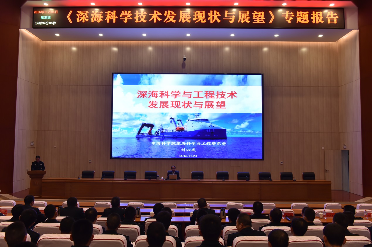 20161124日,深海所首席顧問劉心成受邀赴火箭軍工程大學作題為《深海科學技術發展現狀與展望》的報告。
