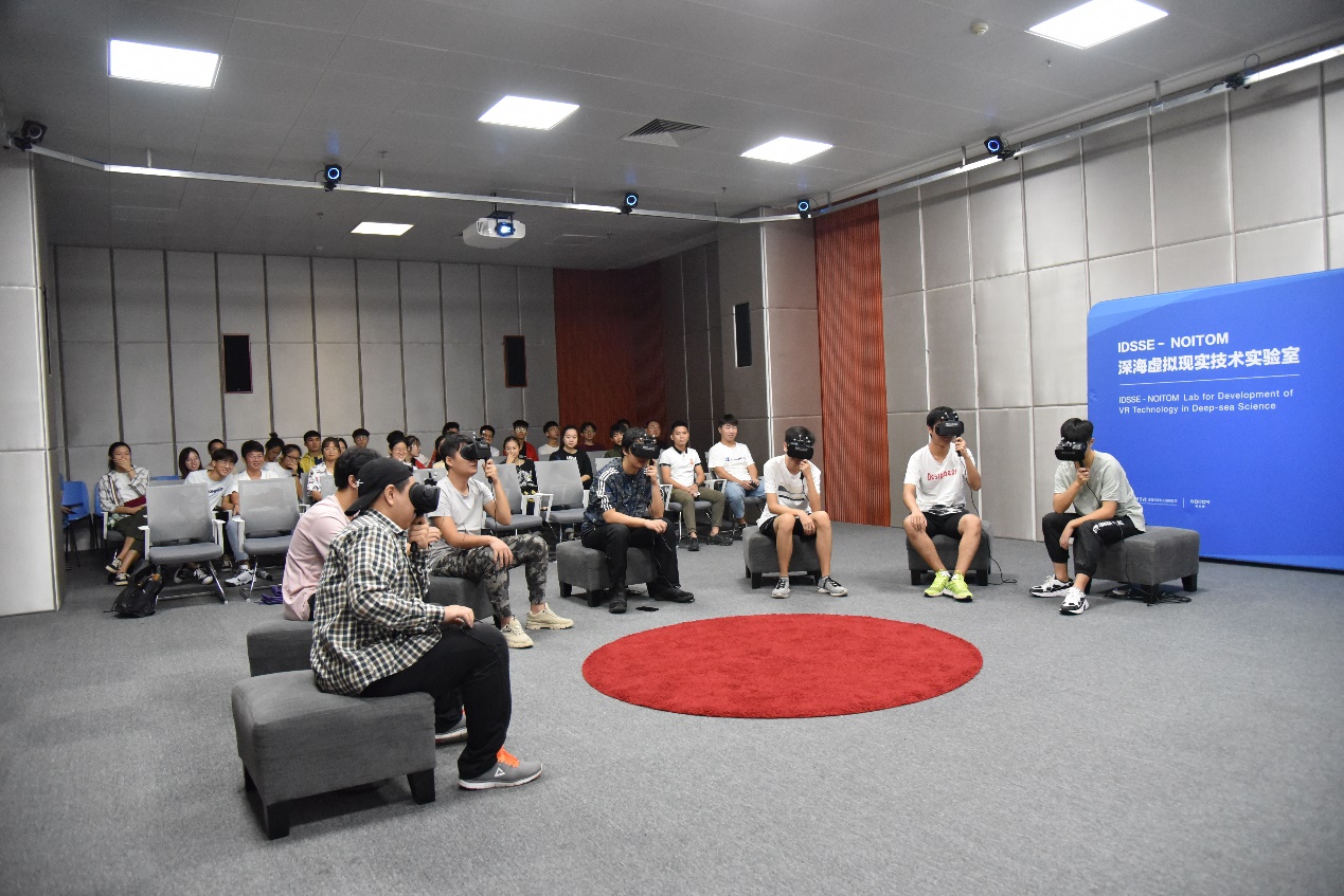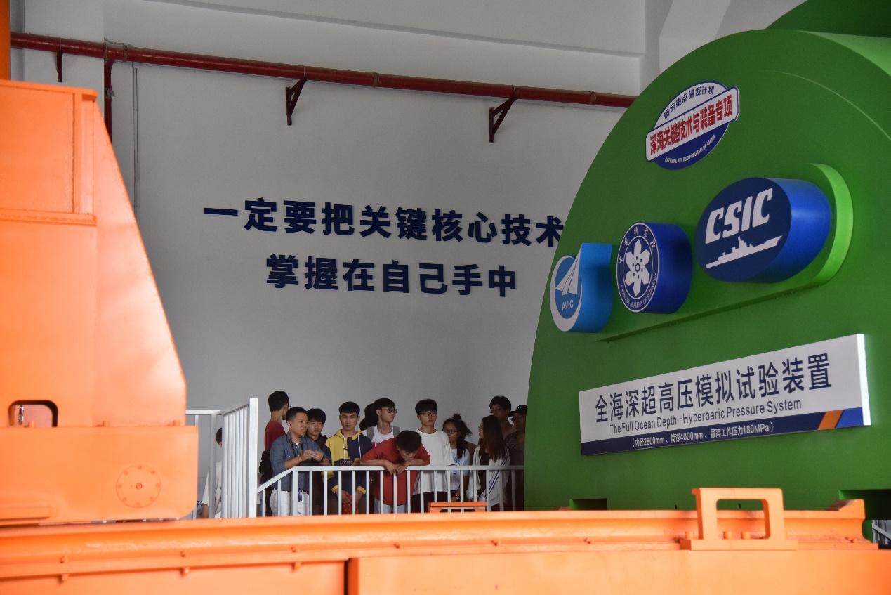 首先,活動邀請到來自深海工程技術部的陳俊副研究員以《海洋裝備及其科考應用》為題,向同學們介紹了海洋裝備的類別和國內外研究現狀,并介紹了深淵著陸器的基本原理、研究進展和應用情況;隨后,在工作人員的帶領下,同學們參觀了工程實驗室和深海超高壓模擬試驗裝置,零距離接觸深淵著陸器、深海機器人等深海裝備,了解超高壓模擬試驗裝置的工作原理;通過觀看“深海勇士”號載人潛水器研制與海試紀錄片,了解深海裝備的研發與應用過程;最后,來訪人員通過VR虛擬現實體驗,“親身感受”深海作業場景和海底奇觀。活動使同學們大開眼界,激發了大家對深海工程技術和深淵探索的極大興趣。