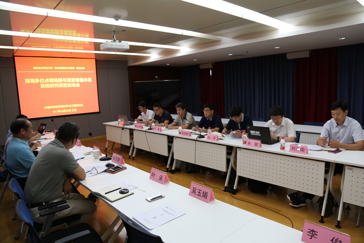 2017年10月26日,中國科學院深海科學與工程研究所在三亞組織召開了國家重點研發(fā)計劃“深海關鍵技術與裝備”重點專項“深海多位點著陸器與漫游者潛水器系統(tǒng)研究”項目啟動會。項目責任專家、項目參研單位代表共計20人參加了會議。