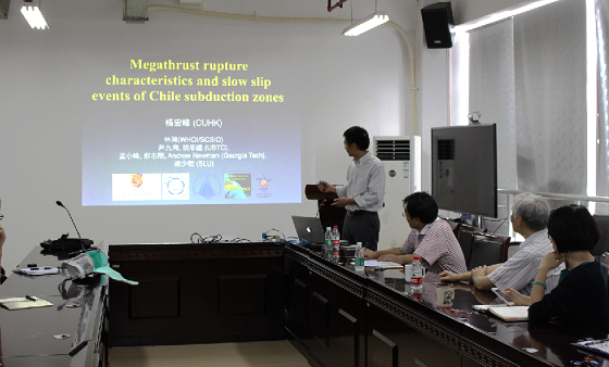 1月7日下午,應(yīng)深??茖W(xué)部吳時國研究員、田麗艷副研究員的邀請,香港中文大學(xué)理學(xué)院地球系統(tǒng)助理教授、青年千人計劃學(xué)者楊宏峰博士到我所進行學(xué)術(shù)交流訪問,并作了題為“Megathrust rupture characteristics and slow slip events of Chile subduction zones”的學(xué)術(shù)報告。
