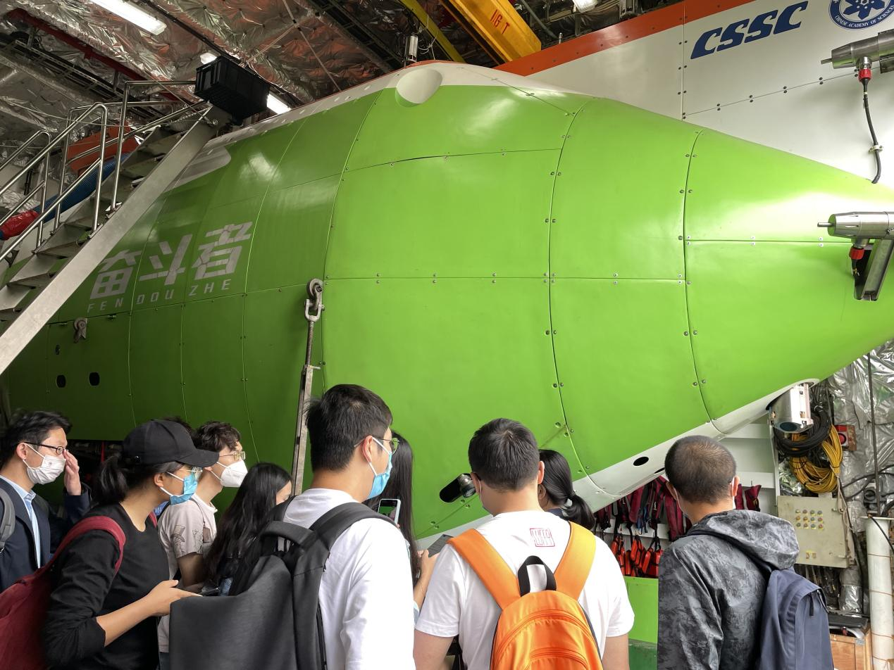 2月15日上午,同學們參觀了探索一號科考船和“奮斗者”號載人潛器,近距離走進深海探測的大國重器,并向潛航員學習了有關下潛的知識,和船長交流了出海科考經驗