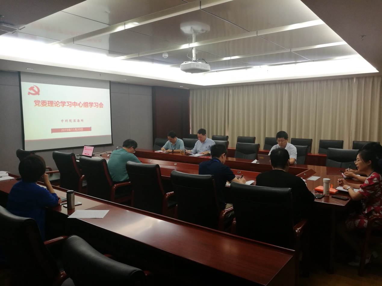1120日下午,中國科學院深??茖W與工程研究所在綜合樓815會議室召開黨委理論學習中心組學習會,重點學習領會中央十九屆四中全會精神。在所領導班子成員、黨委委員、各部門負責人等參加學習會。