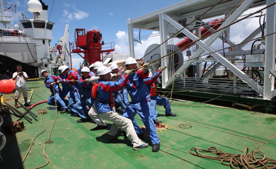 深海所黨委重視黨建工作和科研中心工作的融合,在科考和載人航次現場建立臨時黨組織,將黨旗插在深淵科考現場,讓黨徽照亮載人深潛征程,加強學習教育和思想發動,開展創先爭優,激發了廣大黨員和全體參航人員的斗志,為航次任務的圓滿完成提供了堅強有力的思想和組織保證,并探索了一條適合深淵科考和載人深潛工作的黨建之路。
