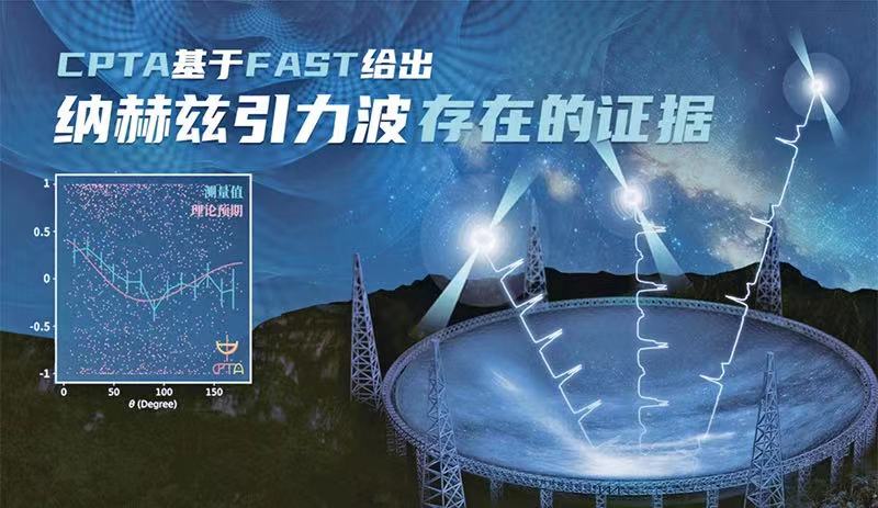 中國脈沖星測時陣列(CPTA)研究團隊,利用被譽為“中國天眼”的500米口徑球面射電望遠鏡(FAST),發現納赫茲引力波存在的關鍵性證據。圖為這一發現的示意圖。 中國科學院供圖