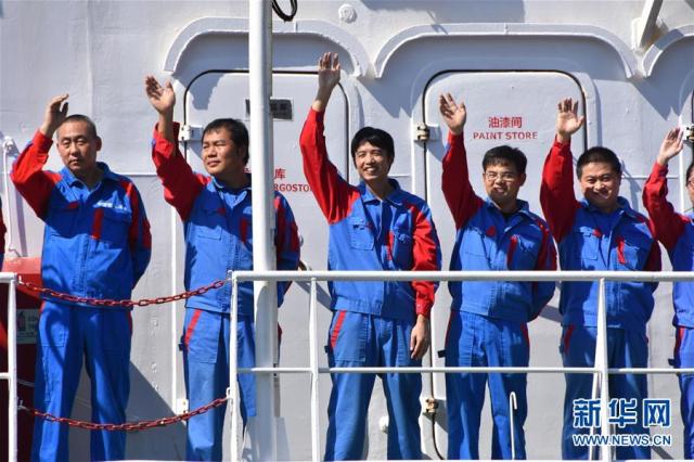 10月16日,參加第三次萬米深淵綜合科考任務(wù)的隊員向歡迎人群揮手致意