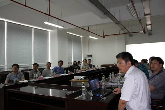 代亮首先代表三亞深海所對(duì)黃寧生院長(zhǎng)一行表示歡迎,同時(shí)對(duì)廣州分院在籌建工作上給予的支持和指導(dǎo)表示感謝。隨后,代亮從建所背景、籌建方案、籌建工作進(jìn)展、2013年的主要工作四個(gè)方面詳細(xì)介紹了三亞深海所籌建工作開展情況??偣こ處煆埌鹤髁岁P(guān)于組織凝練重大項(xiàng)目的專題匯報(bào)。深海科學(xué)研究部研究員李松海向分院領(lǐng)導(dǎo)匯報(bào)了海洋哺乳動(dòng)物與海洋生物聲學(xué)實(shí)驗(yàn)室建設(shè)情況。
