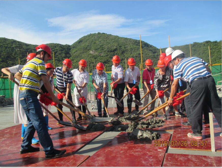 最后,參加儀式的各位領導為大樓主體工程澆筑了最后一方混凝土,封頂儀式順利完成。