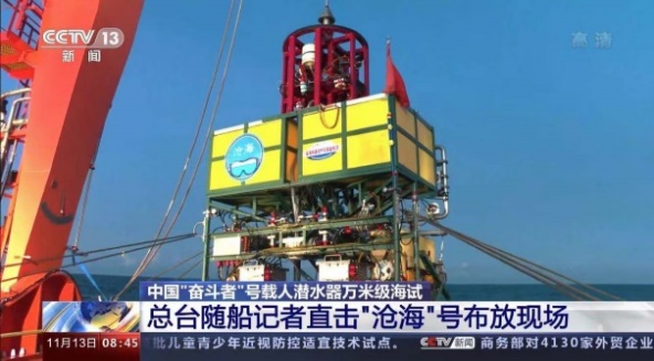 全海深視頻直播系統中的“滄海”號視頻著陸器開展了6次萬米試驗,其中“滄海”號與“奮斗者”號在萬米海底開展了三次聯合作業;全海深視頻直播系統建立了“奮斗者”號載人潛水器→“滄海”號視頻著陸器→“探索二號”船水面控制中心→衛星→中央廣播電視總臺演播室的實時通信鏈路。實現把“奮斗者”號在萬米海底進行科考作業的過程向全國人民進行了世界上首次萬米海底的超高清視頻實況直播和科普教育;通過“滄海”號和“奮斗者”號載人潛水器上的通信對接,使北京中央廣播電視總臺演播室和萬米海底的潛航員、科學家開展實時視頻對話。海試驗證了項目組研制的全海深超高清相機、超高清3D相機、照明系統、中繼器和“滄海”號著陸器、水密接插件等全部國產裝備的可靠性。