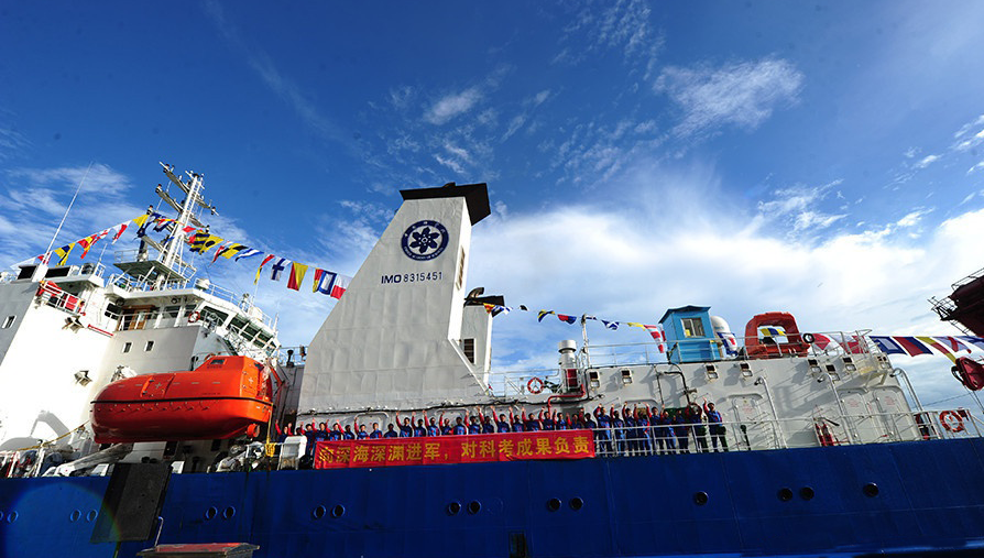 中國4500米載人潛水器及萬米深潛作業工作母船“探索一號”科考船首航取得圓滿成功