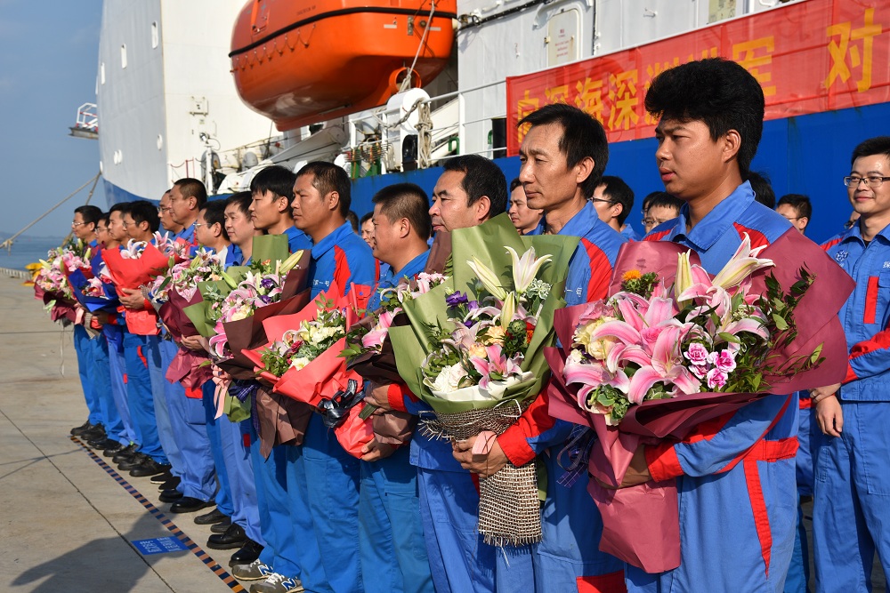 23日上午8:30,中國(guó)科學(xué)院丁仲禮副院長(zhǎng)、海南省科技廳副廳長(zhǎng)王利生、科技部、國(guó)家海洋局北海分局、三亞市等有關(guān)部門(mén)和單位領(lǐng)導(dǎo)、參航單位代表、科考隊(duì)員家屬代表在三亞港碼頭歡迎科考隊(duì)凱旋。