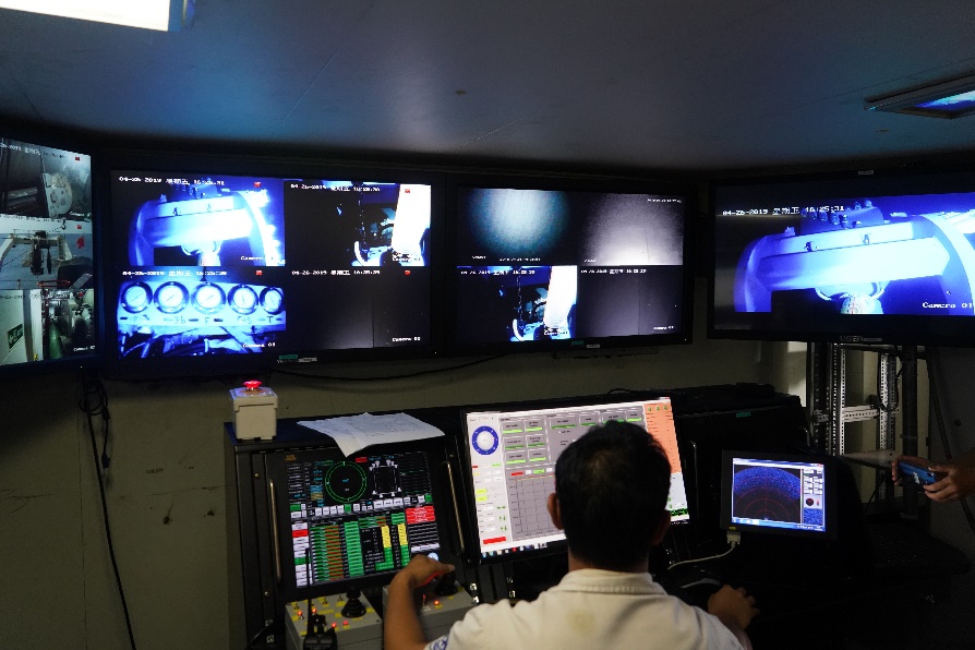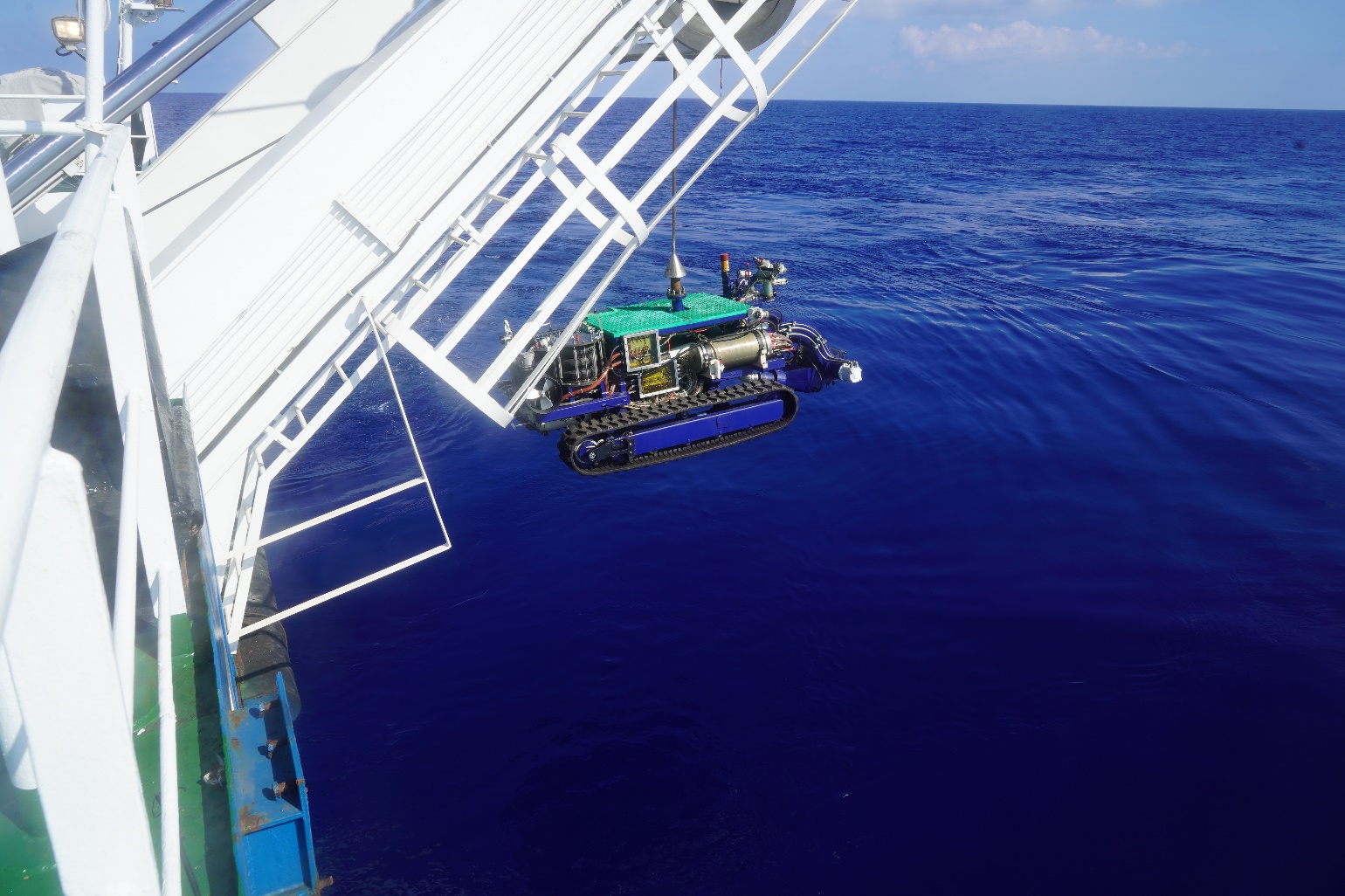 2019年4月23日,深海所研發(fā)的深海富鈷結(jié)殼規(guī)模采樣裝置參加由廣州海洋地質(zhì)調(diào)查局組織的“海洋六號(hào)”科考船共享航次,開展了為期10天的南海海上試驗(yàn)。在進(jìn)行前期的功能性試驗(yàn)、海底地形調(diào)查試驗(yàn)后,于4月27日開始了富鈷結(jié)殼礦石的采樣作業(yè),共進(jìn)行了兩次采樣,作業(yè)水深為2490m,獲得了巖石樣品。試驗(yàn)裝置在復(fù)雜的地形條件下成功開展行走、破碎和收集等系列采樣作業(yè)。