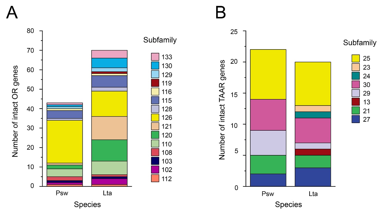 深海獅子魚(yú)和潛海獅子魚(yú)嗅覺(jué)受體基因和痕量氨受體基因數(shù)量比較