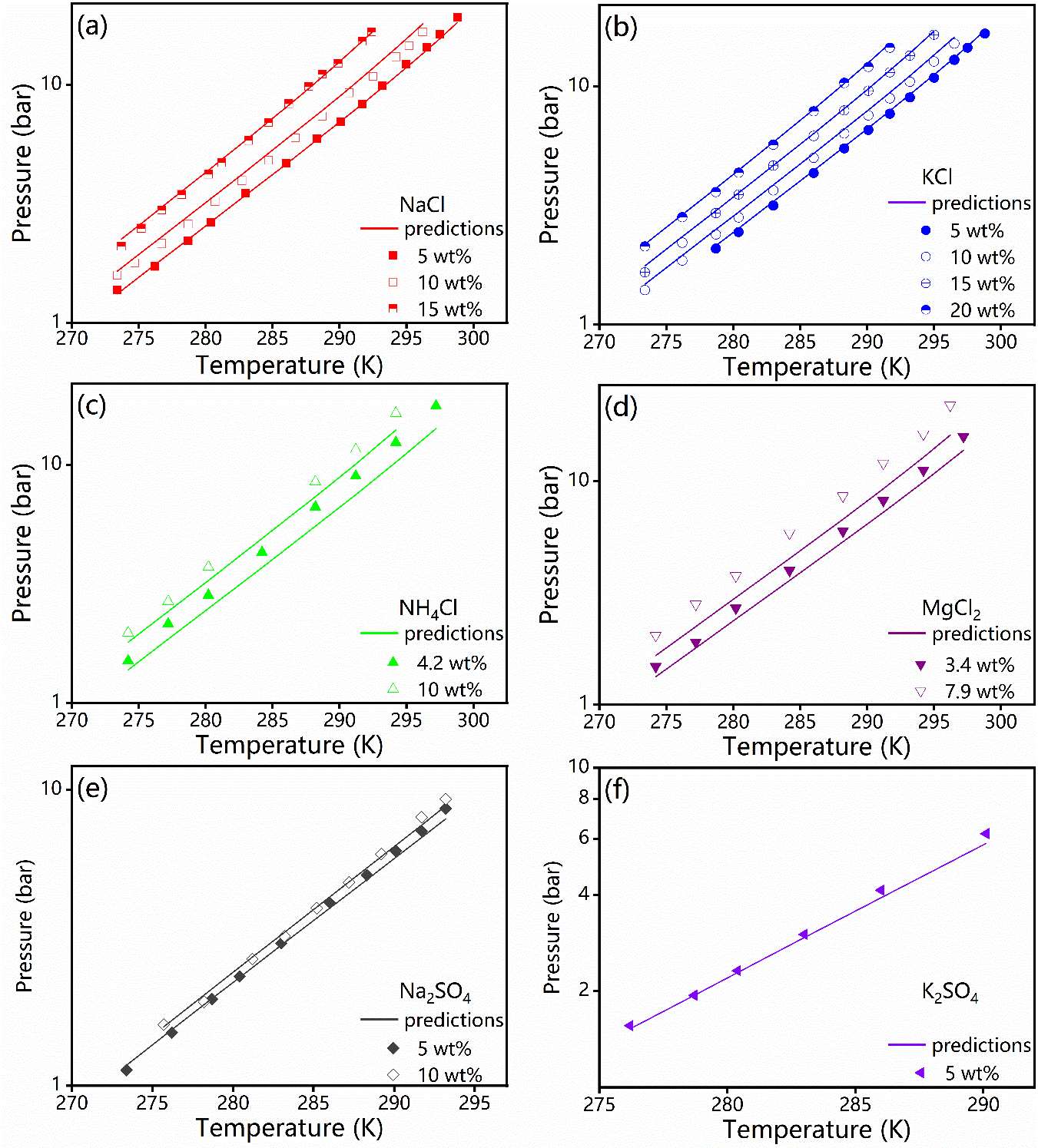另外,研究團隊測量了H2S水合物在多種電解質溶液中的分解條件。實驗結果表明,電解質濃度與抑制效應呈正相關;相同濃度條件下,MgCl2具有最強的抑制效果。在實驗數據基礎上,該研究建立了相關的熱力學模型,準確地預測出H2S水合物在不同電解質溶液中的分解條件,并給出了相應的分解焓。在機理分析方面,通過拉曼光譜手段揭示了電解質通過改變溶液中氫鍵強度來影響水的活度,從而影響水合物的相平衡條件。相關研究成果發表于《Chemical Engineering Journal》,“Experimental measurement and thermodynamic modeling of dissociation conditions of hydrogen sulfide hydrate in the presence of electrolyte solutions”(DOI: 10.1016/j.cej.2021.133821)。文章第一作者為深海所博士研究生孫既粵,共同第一作者為西北大學孫睿教授,通訊作者為蔣磊研究員。