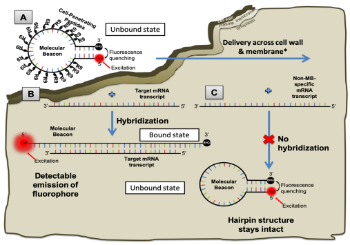 FISH-TAMB探針構象及與信使RNA雜交過程(Harris, Lau et al. 2021)