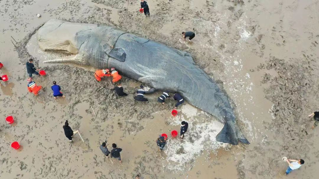 圖10. 浙江象山擱淺的雄性抹香鯨(圖片來源:人民視覺)