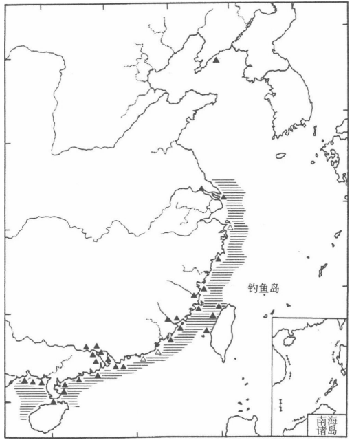 圖3. 中國水域中華白海豚的分布(圖片來源:王丕烈《中國鯨類》)