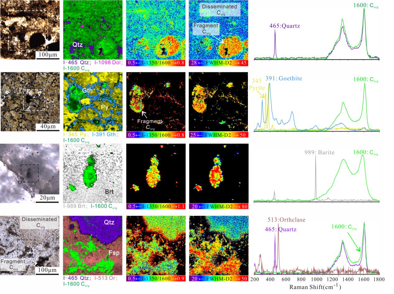 拉曼光譜展示硅質結核內部礦物特征及有機分子結構的微尺度差異