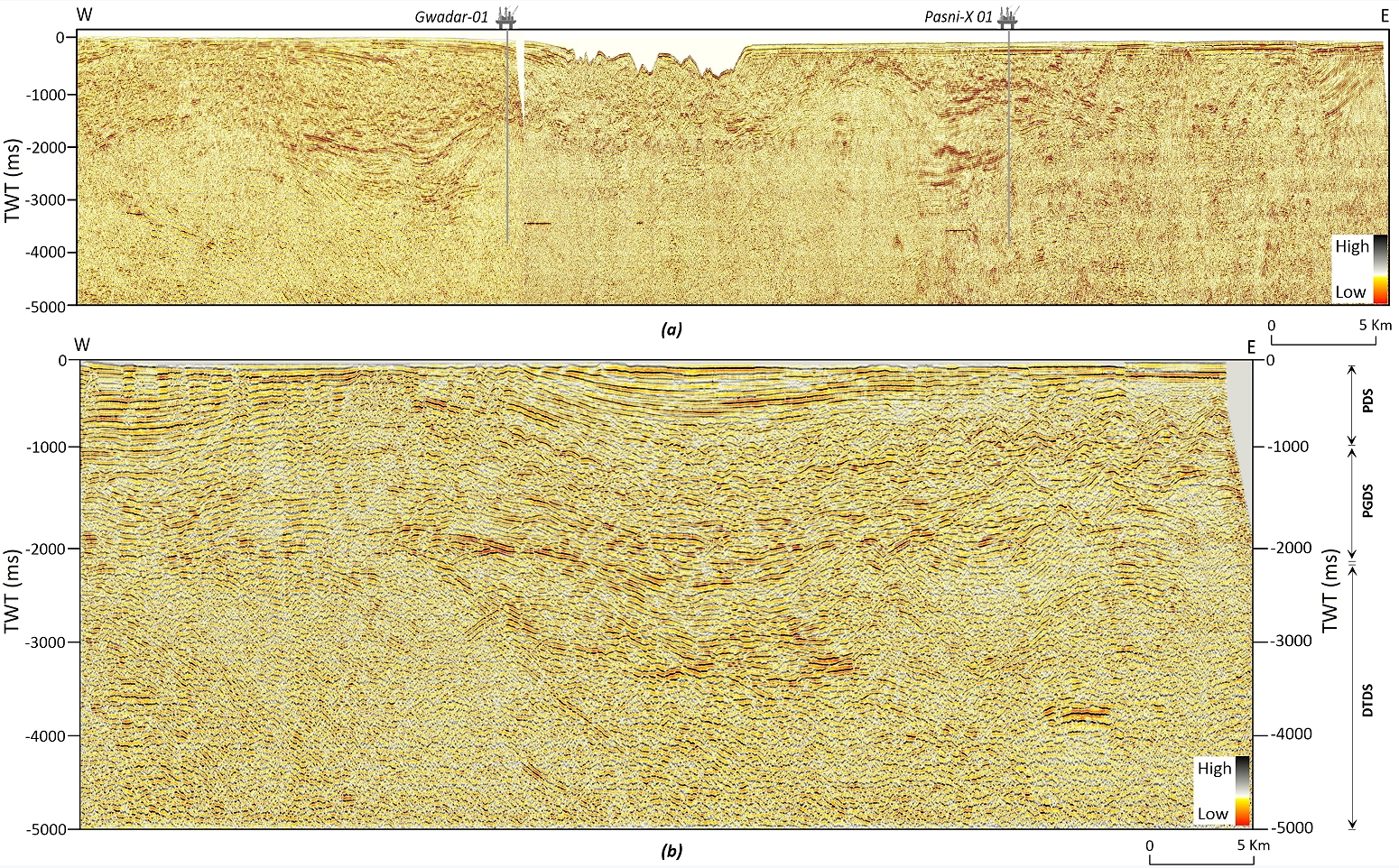 Regional seismic lines (strike) across the Makran accretionary wedge in northern Arabian sea.
