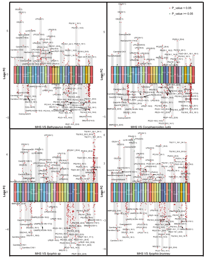 圖3. MHS與其他四種深海魚類間具有顯著差異的脂質(zhì)代謝物