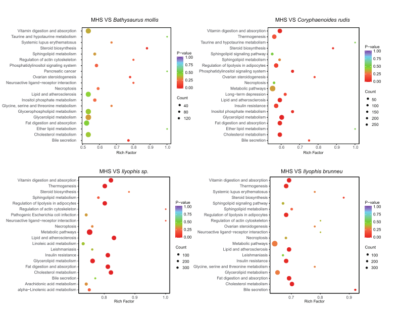 圖4. MHS與其他四種深海魚類脂質(zhì)代謝差異的KEGG富集分析
