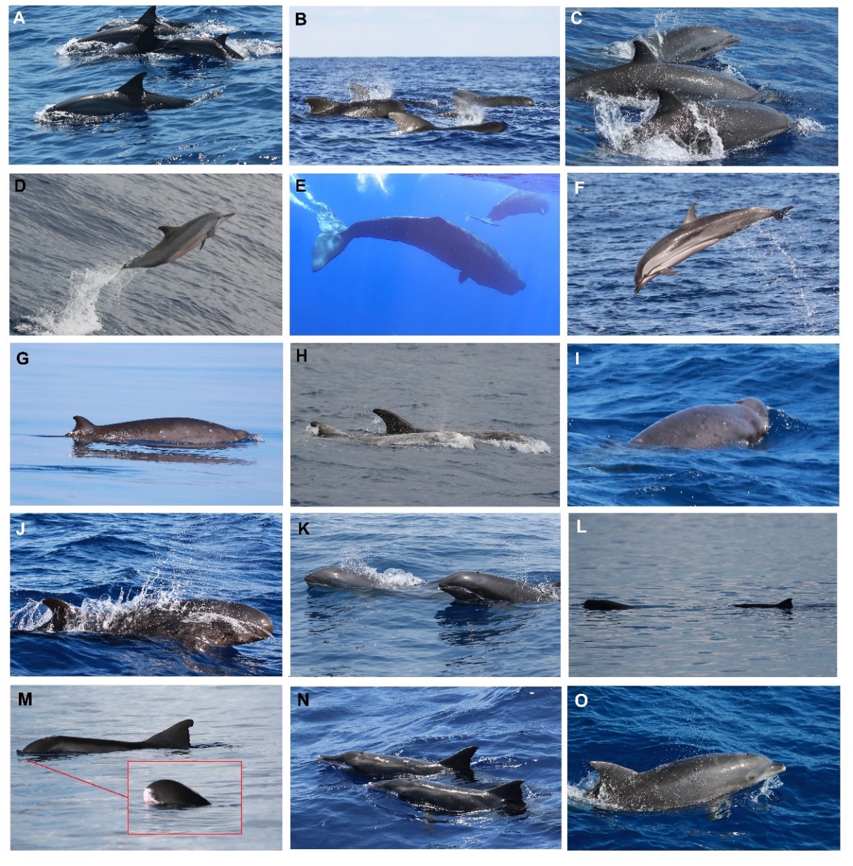 圖1?南海鯨類(lèi)科考航次記錄的多種深潛/遠(yuǎn)海鯨類(lèi)物種