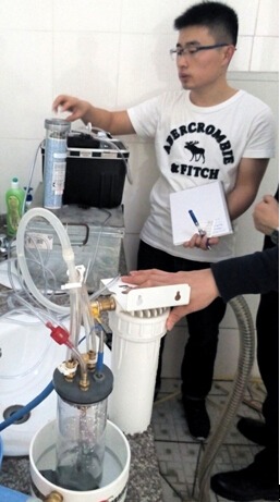 DSSD研究人員對(duì)測(cè)氡儀及水氣平衡器進(jìn)行調(diào)試 多參數(shù)水質(zhì)分析儀和潛水泵
