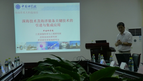 該項目總負責人三亞深海所總工程師張艾群研究員,對“深海技術及海洋裝備關鍵技術的引進與集成應用”總體情況和實施方案做了匯報。項目子課題承擔單位中科院沈陽自動化所俞建成研究員、張奇峰研究員,中科院聲學所南海站甘維明副研究員、張鎮邁工程師等項目骨干成員參加會議并分別做了報告。